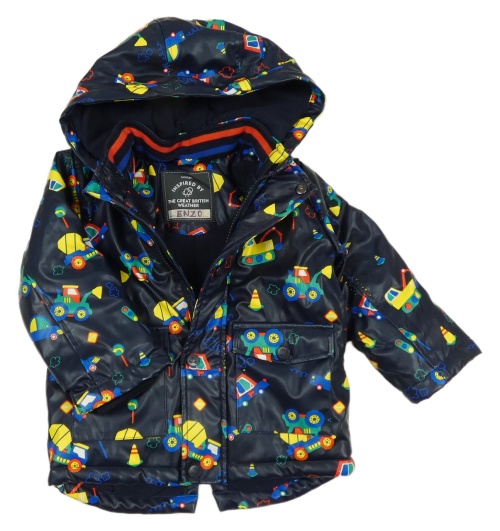 Tmavomodrá nepromokavá zateplená bunda s dopravními prostředky a kapucí George