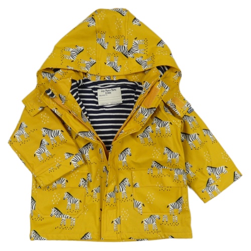 Hořčicová nepromokavá jarní bunda se zebrami a kapucí Jojo Maman Bébé