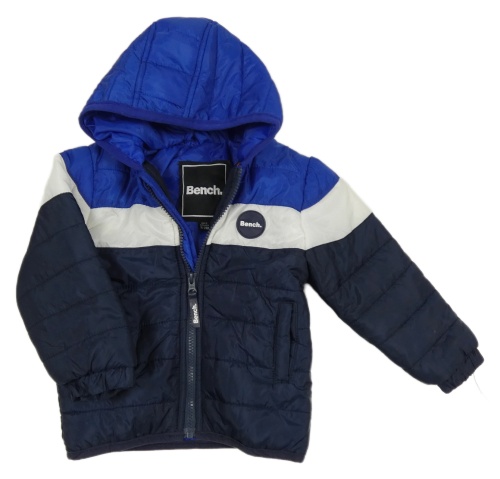 Tmavomodro-bílo-modrá šusťáková prošívaná zimní bunda s kapucí Bench