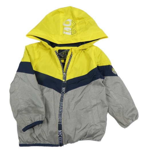 Šedo-žlutá šusťáková prošívaná jarní bunda s kapucí C&A
