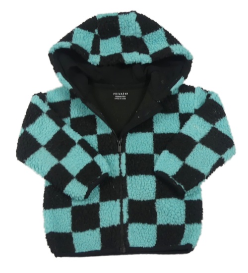 Světletyrkysovo-černá kostkovaná huňatá bunda s kapucí PRIMARK