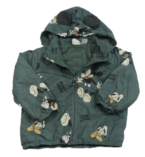 Tmavozelená šusťáková jarní bunda s Mickeym a kapucí Disney