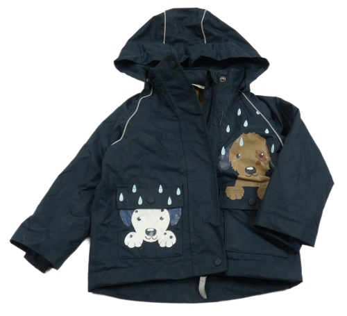 Tmavomodrá šusťáková jarní bunda s pejsky a kapucí Tchibo