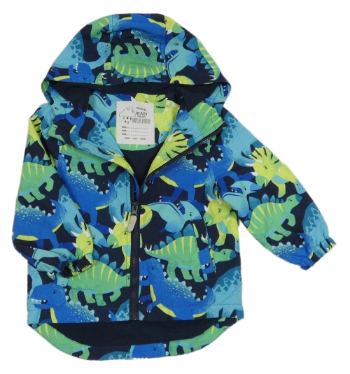 Tmavomodrá šusťáková jarní bunda s dinosaury a kapucí Nutmeg