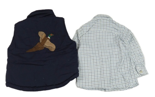 Nové - 2set- tmavomodrá zateplená vesta s bažantem+ kostkovaná košile