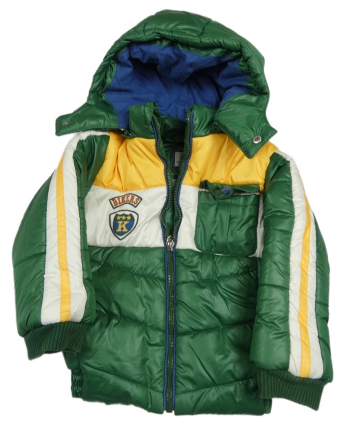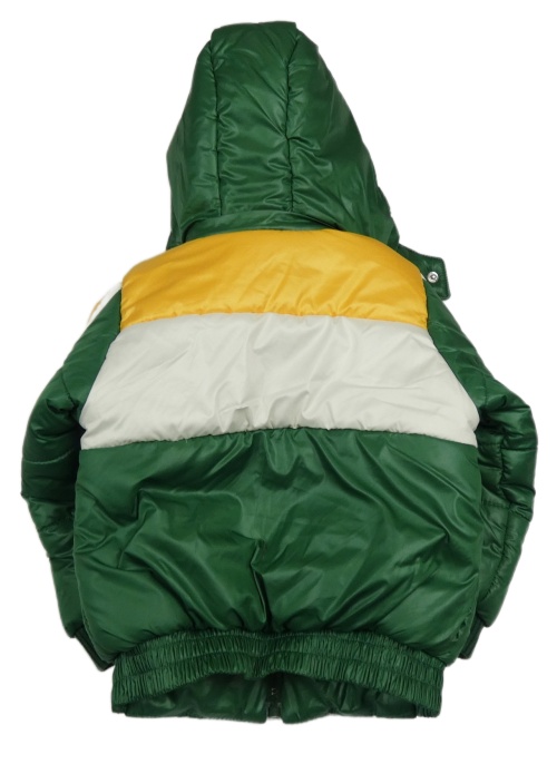 Zeleno-bílo-žlutá šusťáková prošívaná zimní bunda s odepínací kapucí