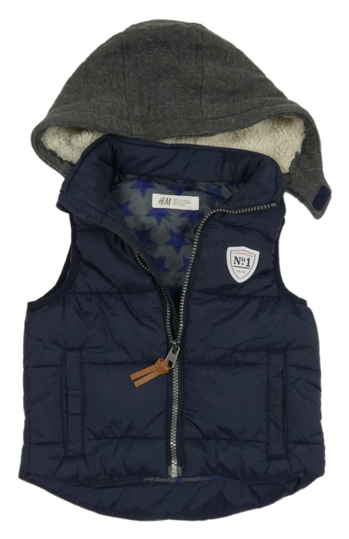 Tmavomodro-šedá šusťáková zateplená vesta s teplákovou kapucí H&M