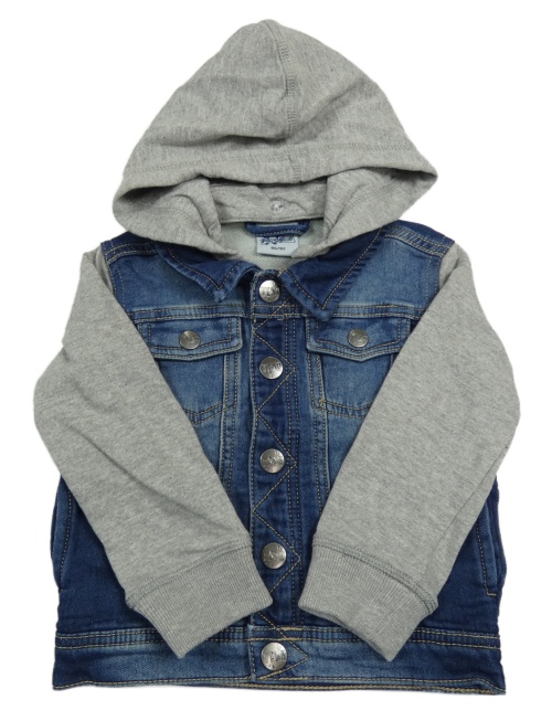 Tmavomodro-šedá riflová bundomikina s kapucí Papagino