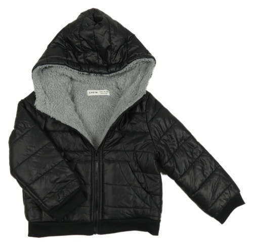 Černá šusťáková zateplená bunda s kapucí Shein