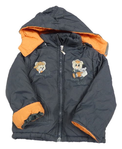 Tmavomošedo-oranžová šusťáková zateplená bunda s medvědy