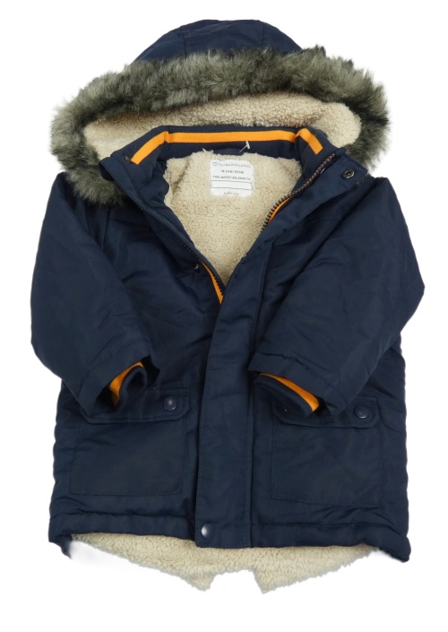 Tmavomodrá šusťáková zateplená bunda s kapucí s kožešinou Primark