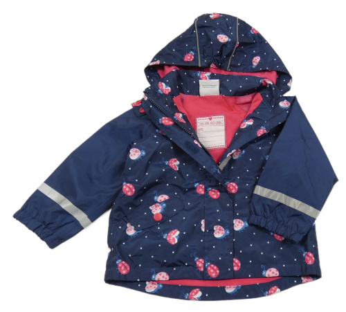 Tmavomodrá šusťáková podšitá bunda s beruškami a kapucí Topomini