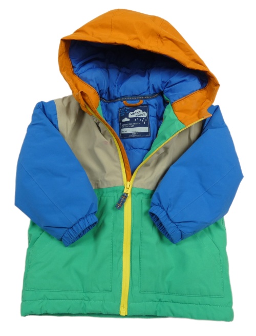 Béžovo-zelená šusťáková zimní bunda s modrými rukávy a kapucí Next