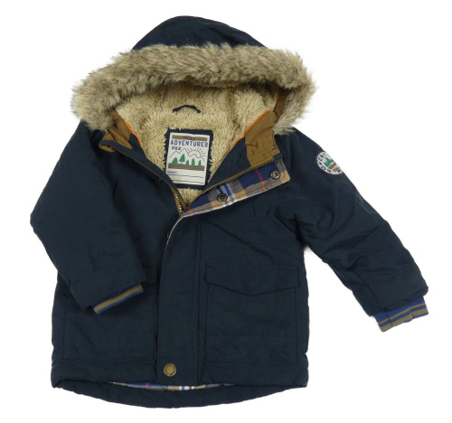 Tmavomodrá šusťáková zimní bunda s kapucí Next