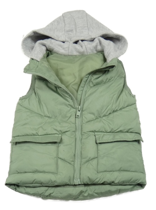 Khaki šusťáková zateplená vesta s teplákovou kapucí Dunnes