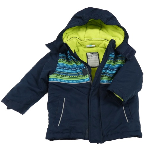 Tmavomodro-zelená šusťáková vzorovaná zimní bunda s kapucí Topomini