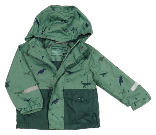 Khaki šusťáková jarní bunda s dinosaury a kapucí Impidimpi