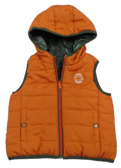 Oranžová šusťáková zateplená oboustranná vesta s kapucí F&F