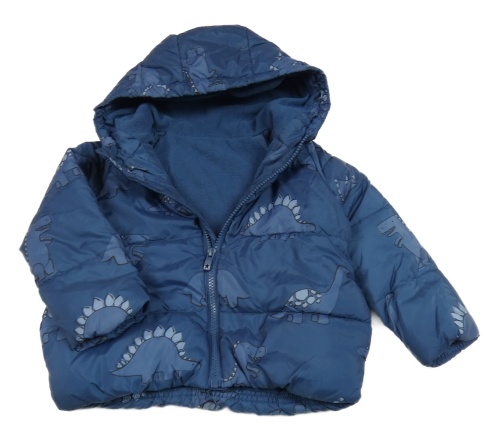 Tmavomodrá šusťáková zimní bunda s dinosaury a kapucí Dunnes