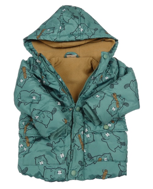 Tmavozelená prošívaná šusťáková zimní bunda s bobříky a kapucí so cute