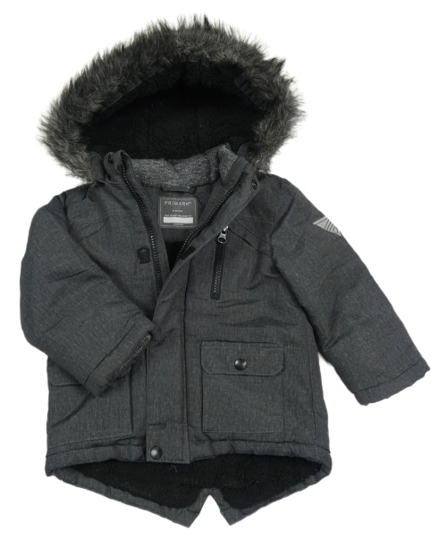 Tmavošedá melírovaná šusťáková zimní parka s kapucí s kožešinou PRIMARK