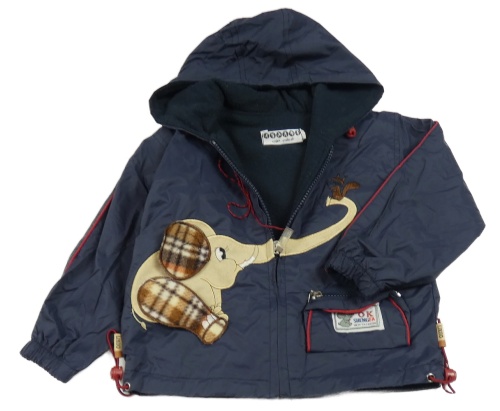 Tmavomodrá šusťáková jarní bunda se slonem a kapucí