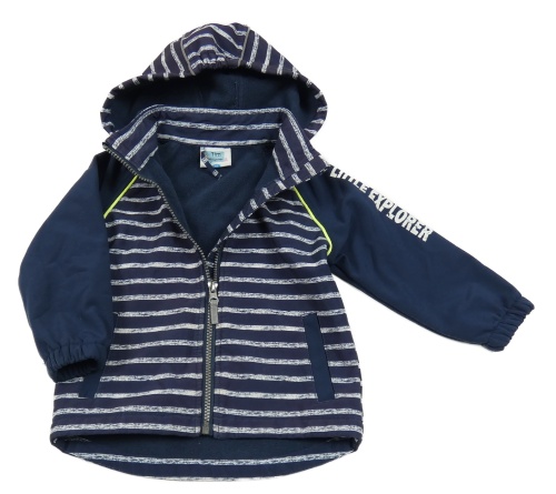 Tmavomodro-bílá pruhovaná softshellová bunda s odepínací kapucí Topolino