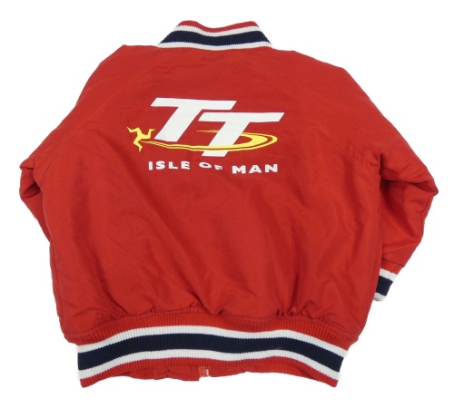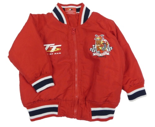 Červená šusťáková lehce zateplená bunda s obrázkem