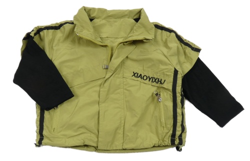 Zeleno-černá šusťáková jarní bunda s nápisem a pruhy