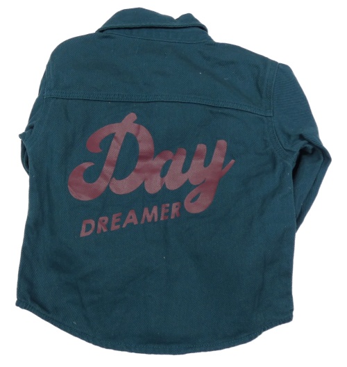Tmavopetrolejová riflová košilová bunda s nápisy PRIMARK