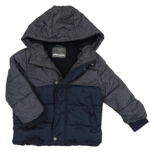 Tmavomodro-melírovaná prošívaná šusťáková zimní bunda s kapucí PRIMARK