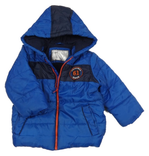 Cobaltově modro-tmavomodrá prošívaná šusťáková zimní bunda s číslem a kapucí Mothercare