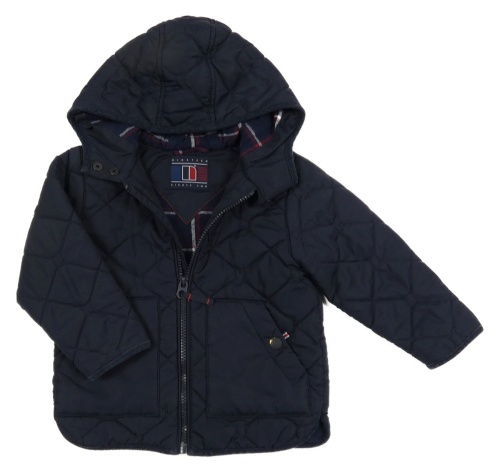 Tmavomodrá šusťáková prošívaná zateplená bunda s kapucí Next