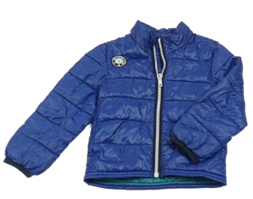 Tmavomodrá šusťáková zateplená bunda s nášivkou