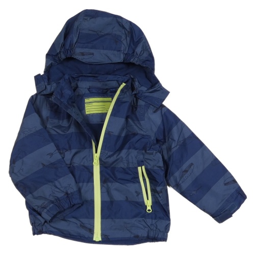 Tmavomodrá pruhovaná šusťáková jarní bunda s velrybami a kapucí Impidimpi