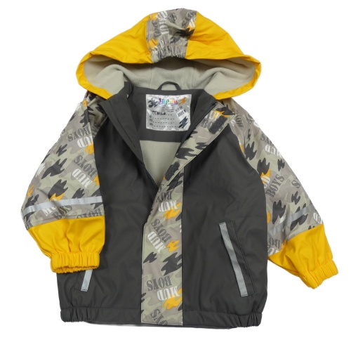 Šedo-žlutá vzorovaná nepromokavá jarní bunda s kapucí Lupilu