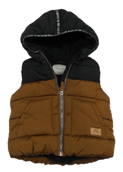 Černo-hnědá šusťáková zateplená vesta s kapucí F&F