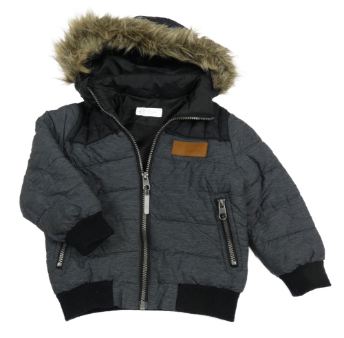 Tmavošedo-černá šusťáková zimní bunda s kapucí H&M