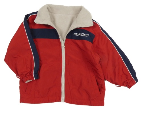 Červeno-tmavomodrá šusťáková jarní oboustranná bunda s logem Reebok