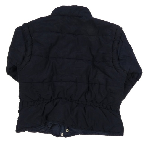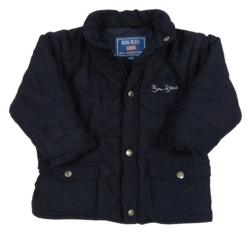 Tmavomodrá šusťáková zimní bunda s nápisem