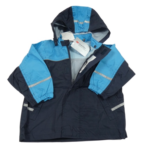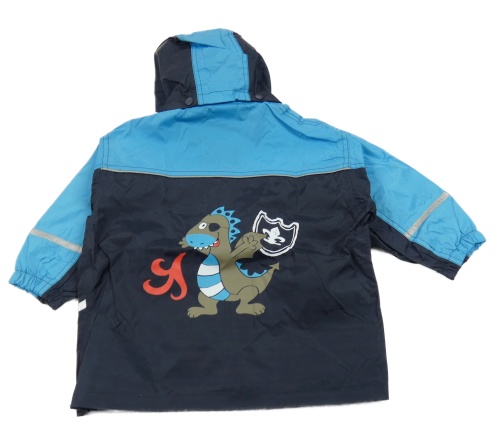Nové - Tmavomodro-tyrkysová šusťáková nepromokavá bunda s drakem a kapucí Papagino