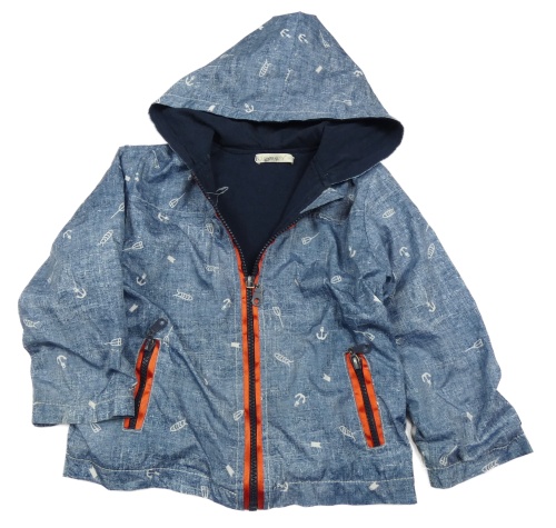 Modrá melírovaná jarní bunda s kotvami a kapucí