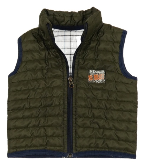 Olivová šusťáková prošívaná zateplená vesta s nápisem
