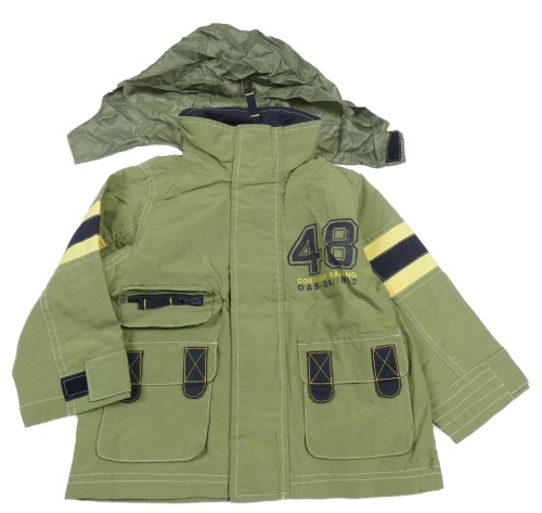 Khaki šusťáková jarní bunda s číslem a ukrývací kapucí