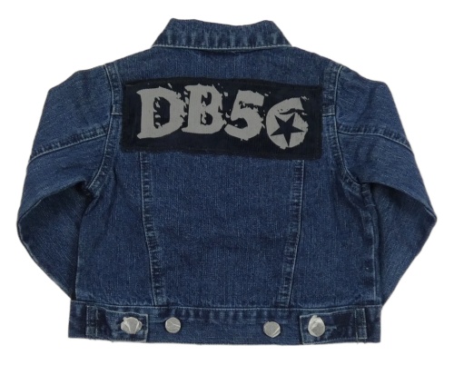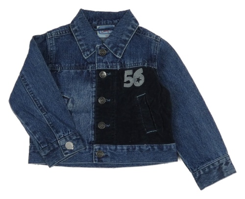 Tmavomodrá riflová bunda s manšestrovým prvkem a číslem