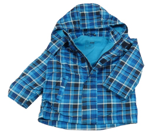Modro-tmavomodro-černo-bílá kostkovaná šusťáková jarní bunda s odepínací kapucí name it