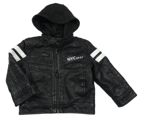 Černá koženková lehce zateplená bunda s odepínací kapucí C&A