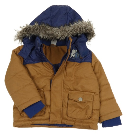 Hnědo-tmavomodrá šusťáková zimní bunda s písmeny a kapucí Kiki&Koko