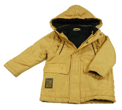 Žluto-šedá pruhovaná šusťáková zimní bunda s kapucí So Cute