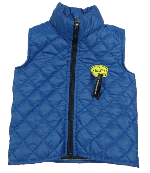 Modrá šusťáková prošívaná lehce zateplená vesta s nášivkou